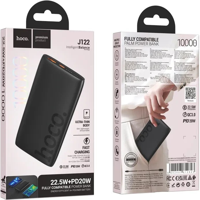 پاور بانک فست شارژ هوکو 22.5 وات مدل J122 با ظرفیت 10000 میلی آمپر ساعت